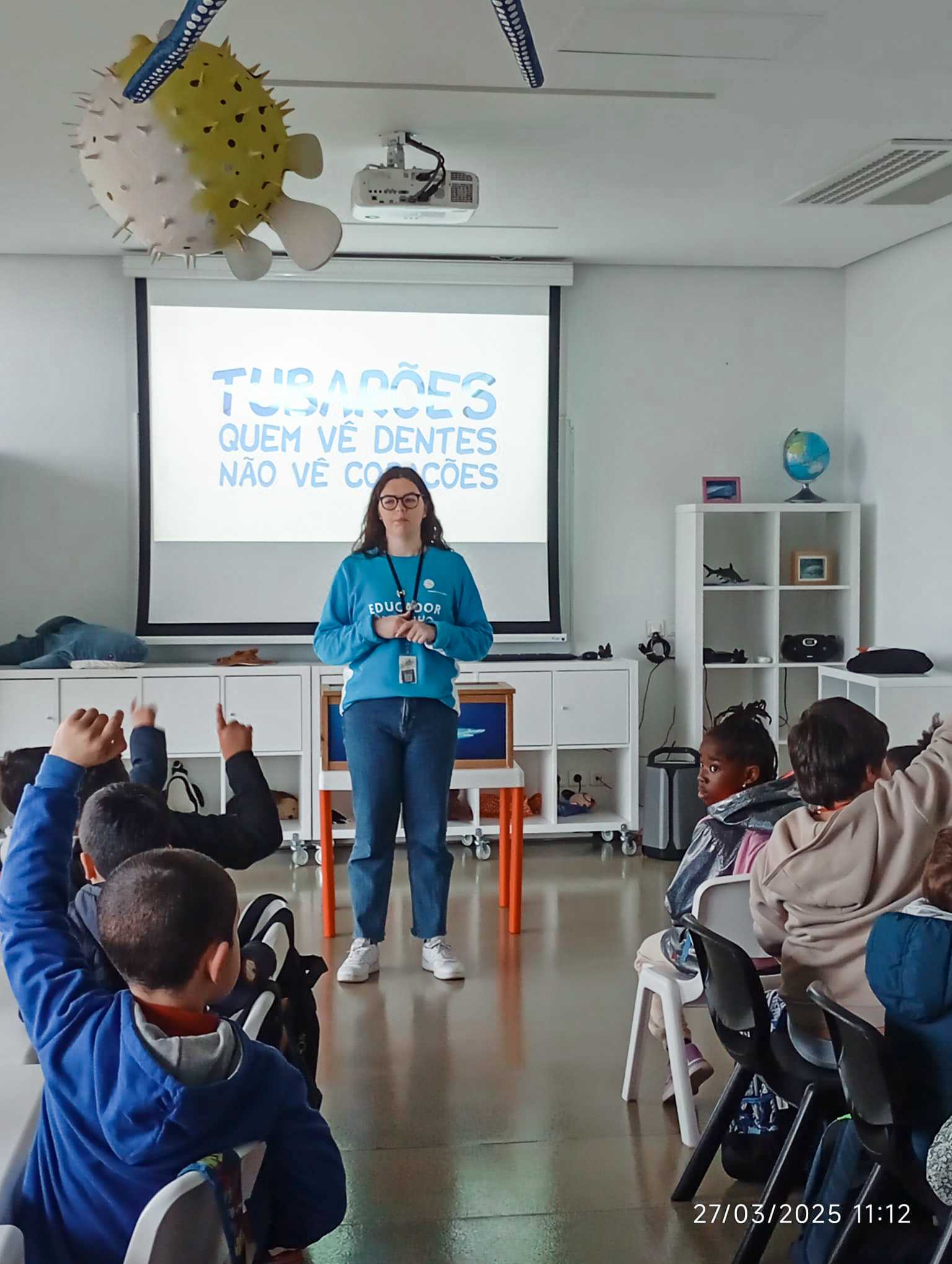 Os alunos participaram no Atelier do Programa de Educação Guiada, “Descobrir os tubarões de A a Z”, com o objetivo de conhecer as espécies marinhas, de acordo com as aprendizagens essenciais e depois fizeram a visita guiada ao Aquário em que observaram animais e plantas que vivem no meio aquático.