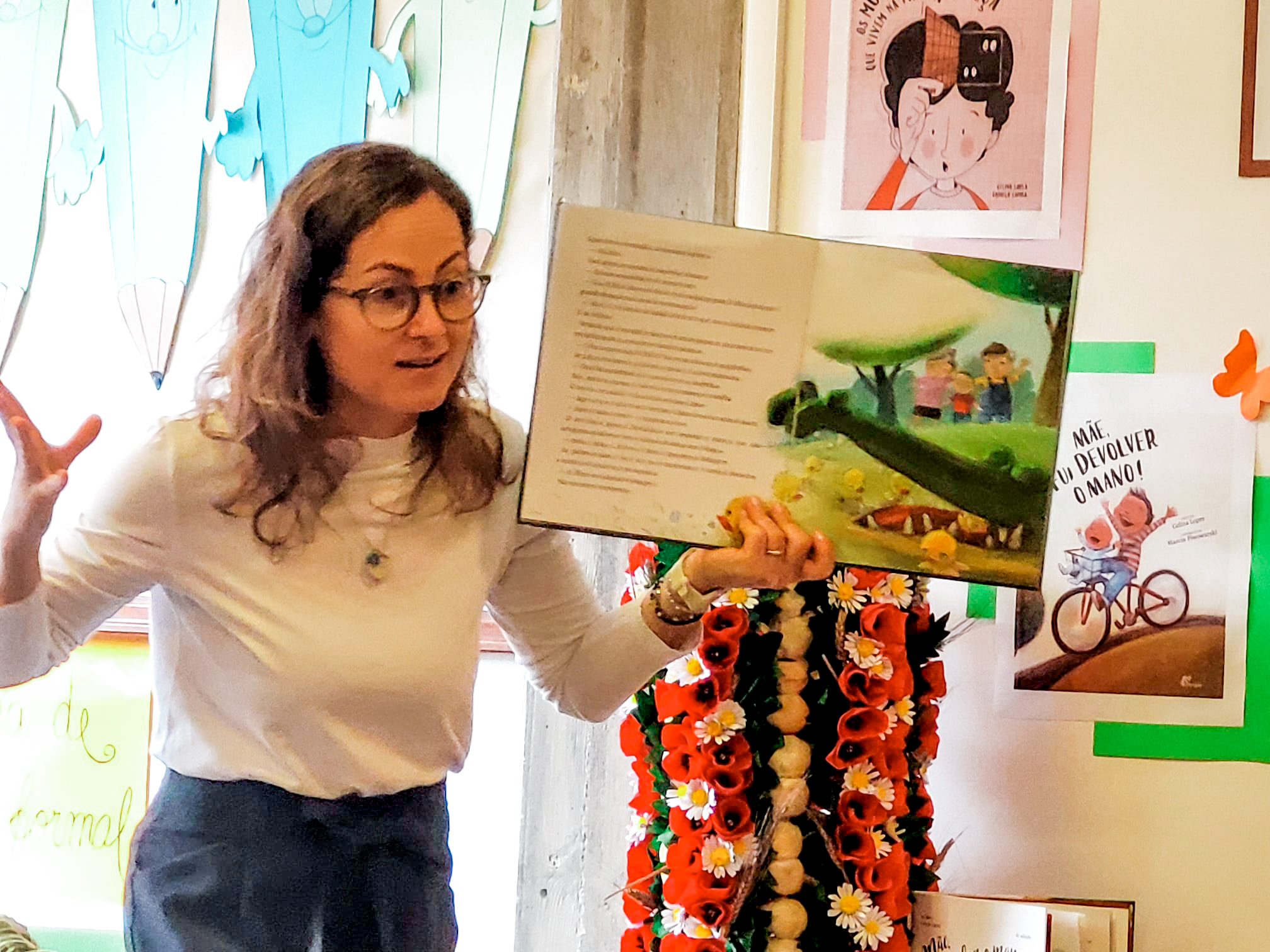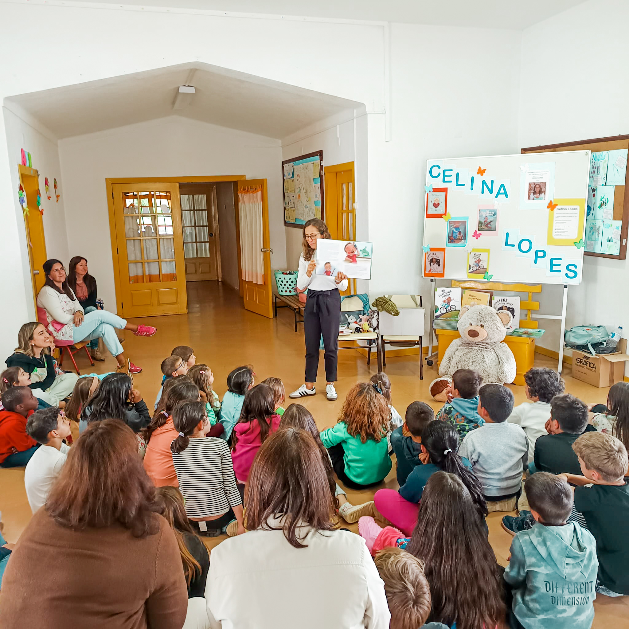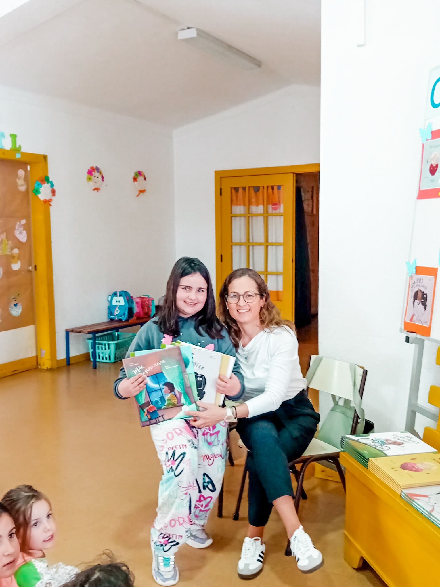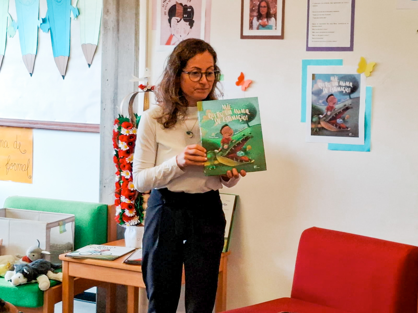 A autora dinamizou duas sessões na EB1/JI Templários e uma sessão na EB1/JI de Carvalhos de Figueiredo, onde falou do processo criativo e da forma como a sua experiência se reflete nas suas histórias. Os alunos puderam ouvir o reconto da obra “Mãe, eu quero um animal de estimação”, uma narrativa divertida que conta a história de Afonso, um menino que queria um animal de estimação.