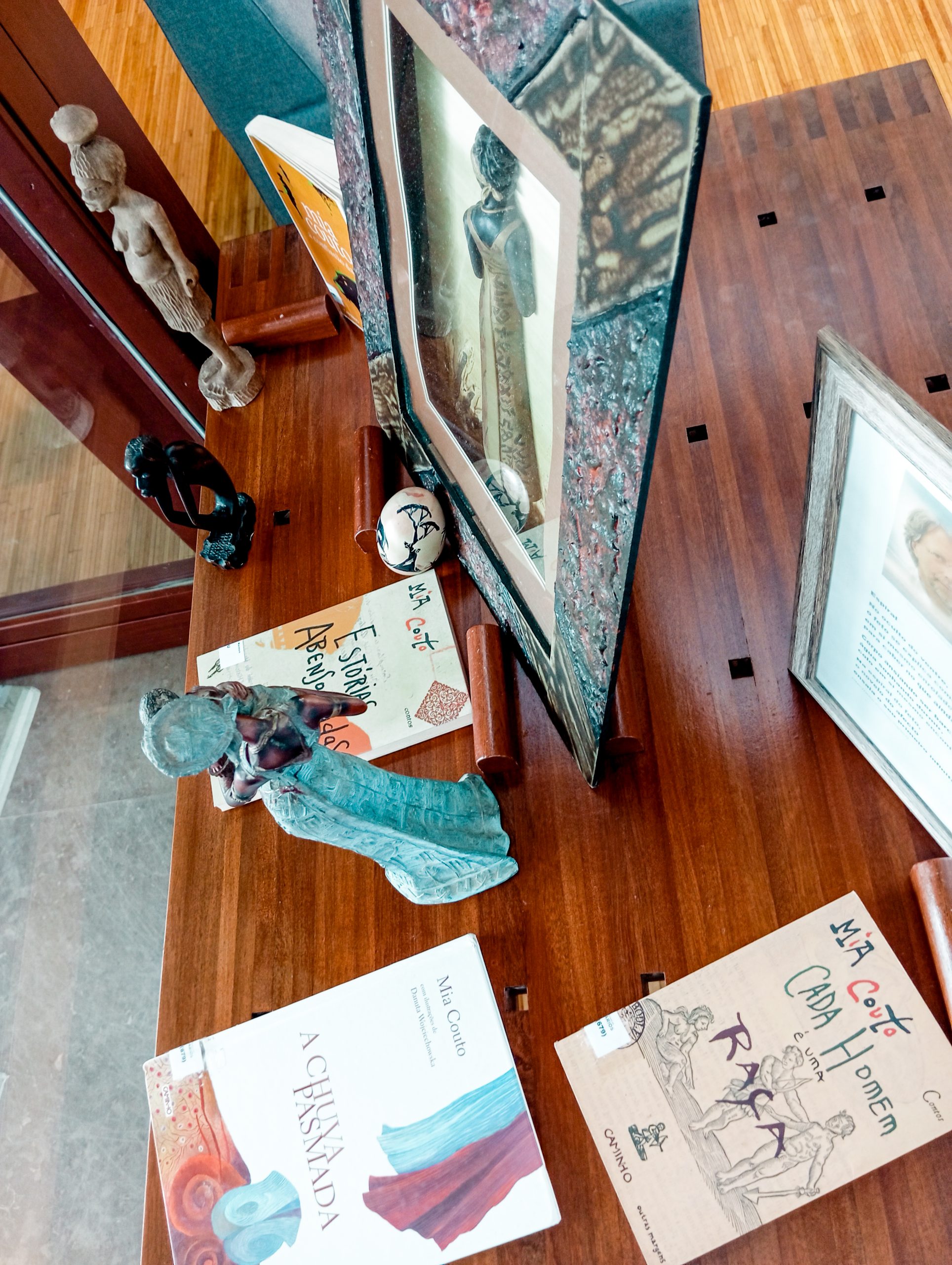 Mia Couto será homenageado, sexta-feira dia 16 de maio, na Biblioteca Municipal António Cartaxo, em Tomar e estará à conversa com alunos e os seus leitores. Assim, a equipa da BE achou pertinente incluir na mostra, não só, obras do escritor, bem como artefactos da vivência moçambicana, paisagens, imagens da gastronomia, dança, peças de vestuário e acessórios, bem como poemas e frases emblemáticas do autor.