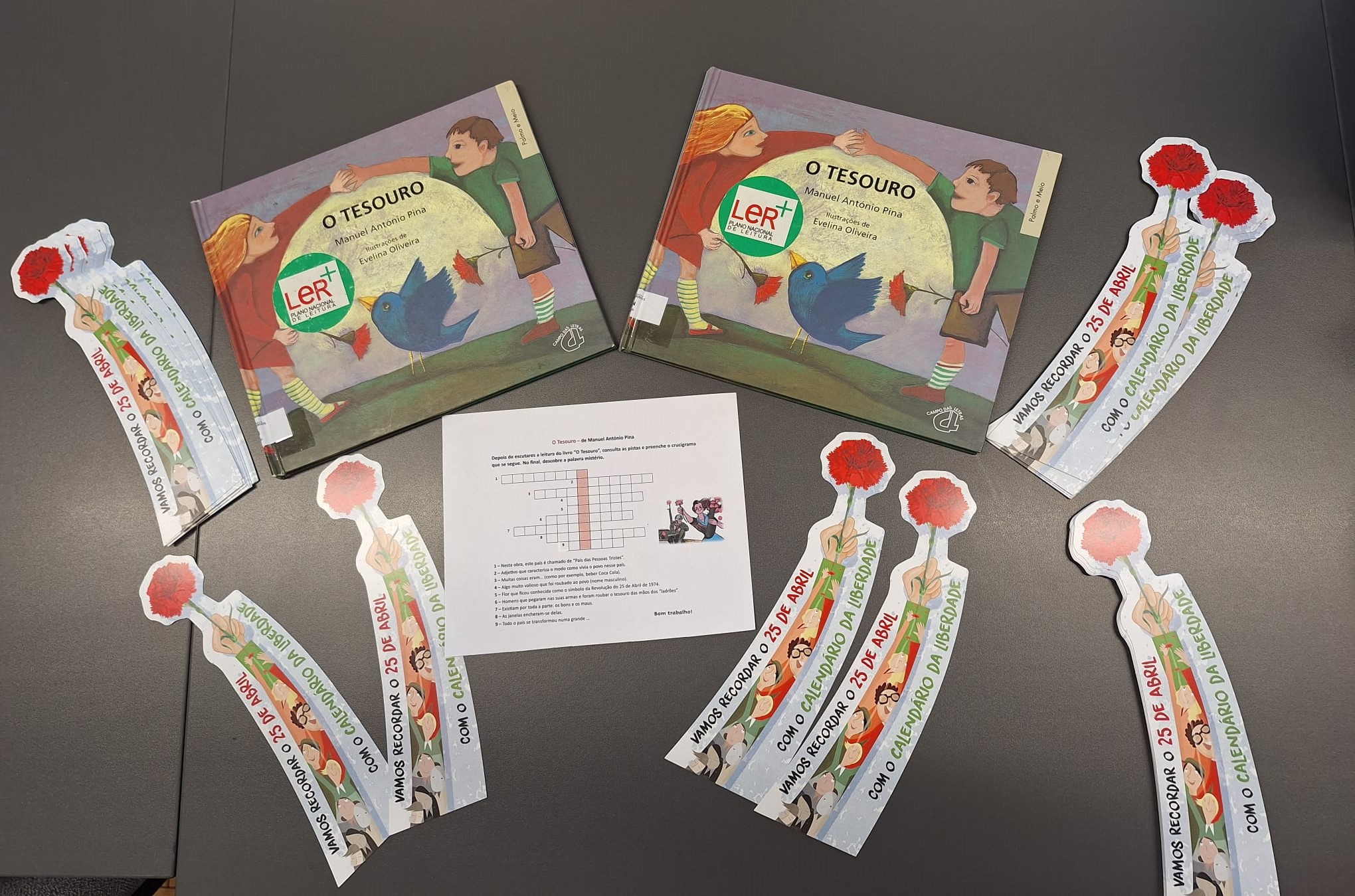 O grupo de Voluntários de Leitura da ESJR, do 10º A, sob a orientação das professoras de português, Maria Alexandra Luz e Cristina Barros, dinamizou, nas turmas A e B do 7º ano da mesma escola, a leitura do livro O Tesouro, de Manuel António Pina, seguida de atividades alusivas à obra. Esta dinâmica surgiu no âmbito da comemoração dos 51 anos do 25 de abril e permitiu que os alunos consolidassem e aprofundassem os seus conhecimentos sobre a data assinalada. Os discentes colaboraram com entusiasmo e salientaram a importância de atividades como esta que proporcionam momentos de aprendizagem diferentes do habitual.