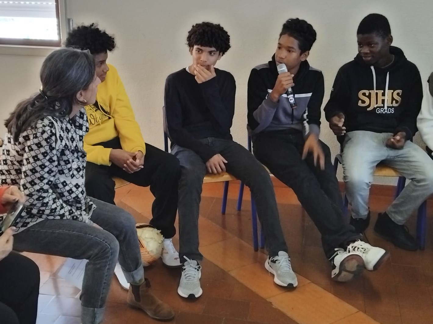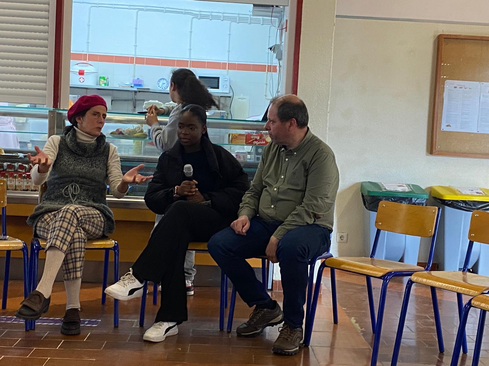 A Maria Morais (artista residente; coordenação Rádio Templários) alertou que, embora se fale mais de racismo e questões de género, outros preconceitos antigos e primários continuam presentes na nossa sociedade e na escola. A Bruna Cortes, nossa convidada do 9ºano, enfrentou o preconceito pela imagem corporal e superou-o com autoconfiança, através da criação do seu próprio canal no Tiktok. O Paulo Salinas, aluno de etnia cigana, falou das dificuldades e barreiras sociais e familiares que enfrenta, mas confessou que sonha ser um exemplo positivo, de abertura e tolerância, para toda a sua comunidade. A Sandra Sofia, assistente operacional do nosso Agrupamento, contou-nos a sua história pessoal, o preconceito de que foi vítima por ter pais surdos e destacou a importância da empatia nas relações sociais. A Marivalda Sebastião, aluna angolana recém-chegada à nossa comunidade, afirmou que se sente integrada, apesar de estar alerta para o racismo. Vaishnavi Dmiri, oriunda da Índia, apontou a língua como a maior barreira à sua integração.