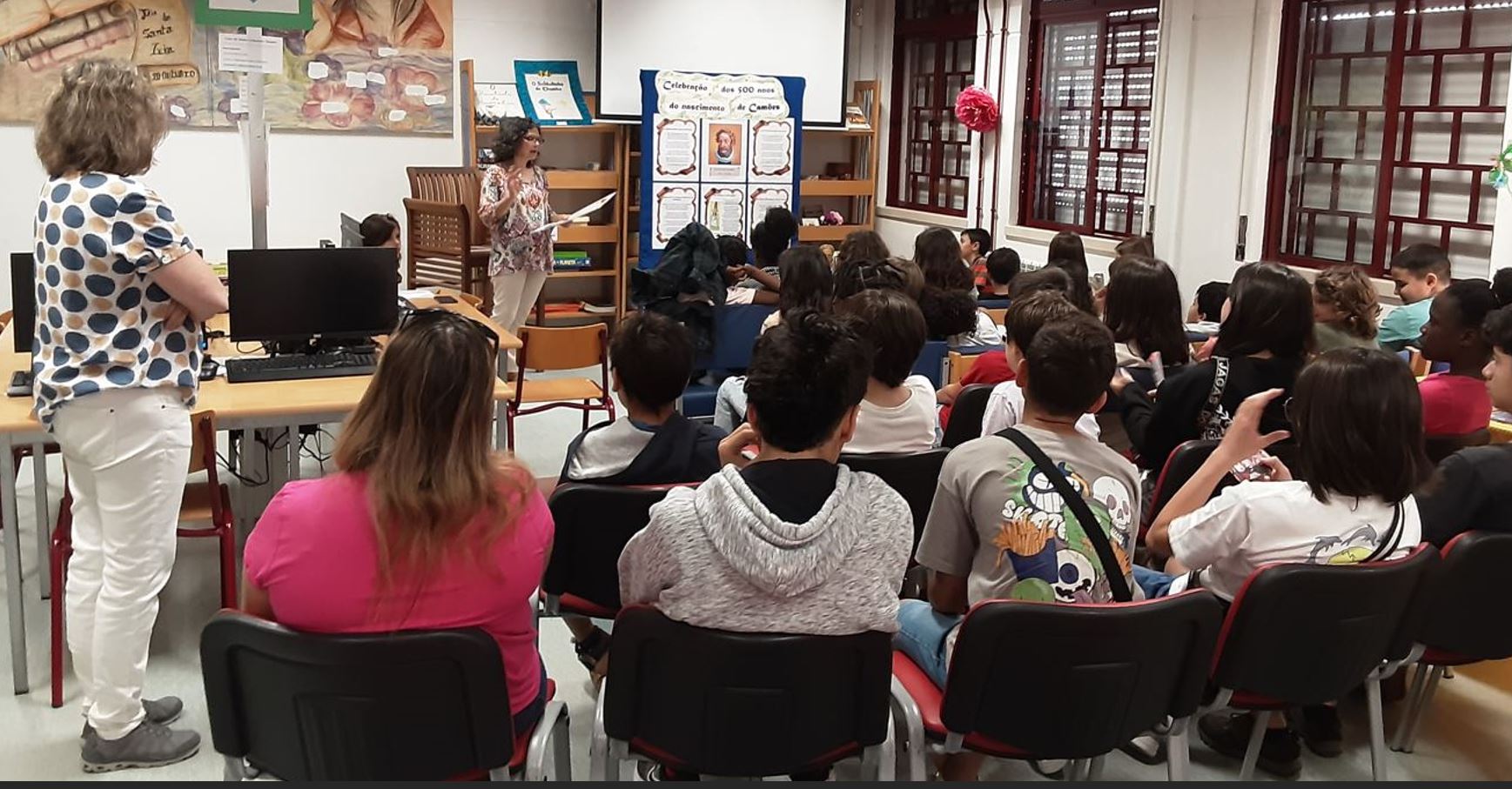 No âmbito das celebrações dos 500 anos do nascimento de Camões, a Biblioteca da Santa iria tem vindo a dinamizar diversas iniciativas e atividades. Na presente notícia reporta-se uma atividade sobre a vida e obra de Luís Vaz de Camões, destinada a alunos do 2ºCiclo. A atividade incluiu a leitura em voz alta de diversos poemas de Camões, assim como a exploração das respetivas temáticas abordadas e discussão de ideias subjacentes. Foram também analisados os significados de algum vocabulário que atualmente já não é utilizado e suscitou dúvidas e curiosidade nos alunos.
