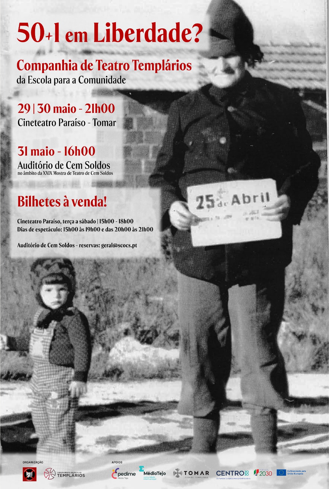 A Companhia de Teatro Templários (CTT), do Agrupamento de Escolas Templários de Tomar, estreou a sua 5.ª criação original — “50+1, em Liberdade?” — nos dias 29 e 30 de maio, no Cine Teatro Paraíso em Tomar, e no dia 31 de maio, na XXIX Mostra de Teatro de Cem Soldos.