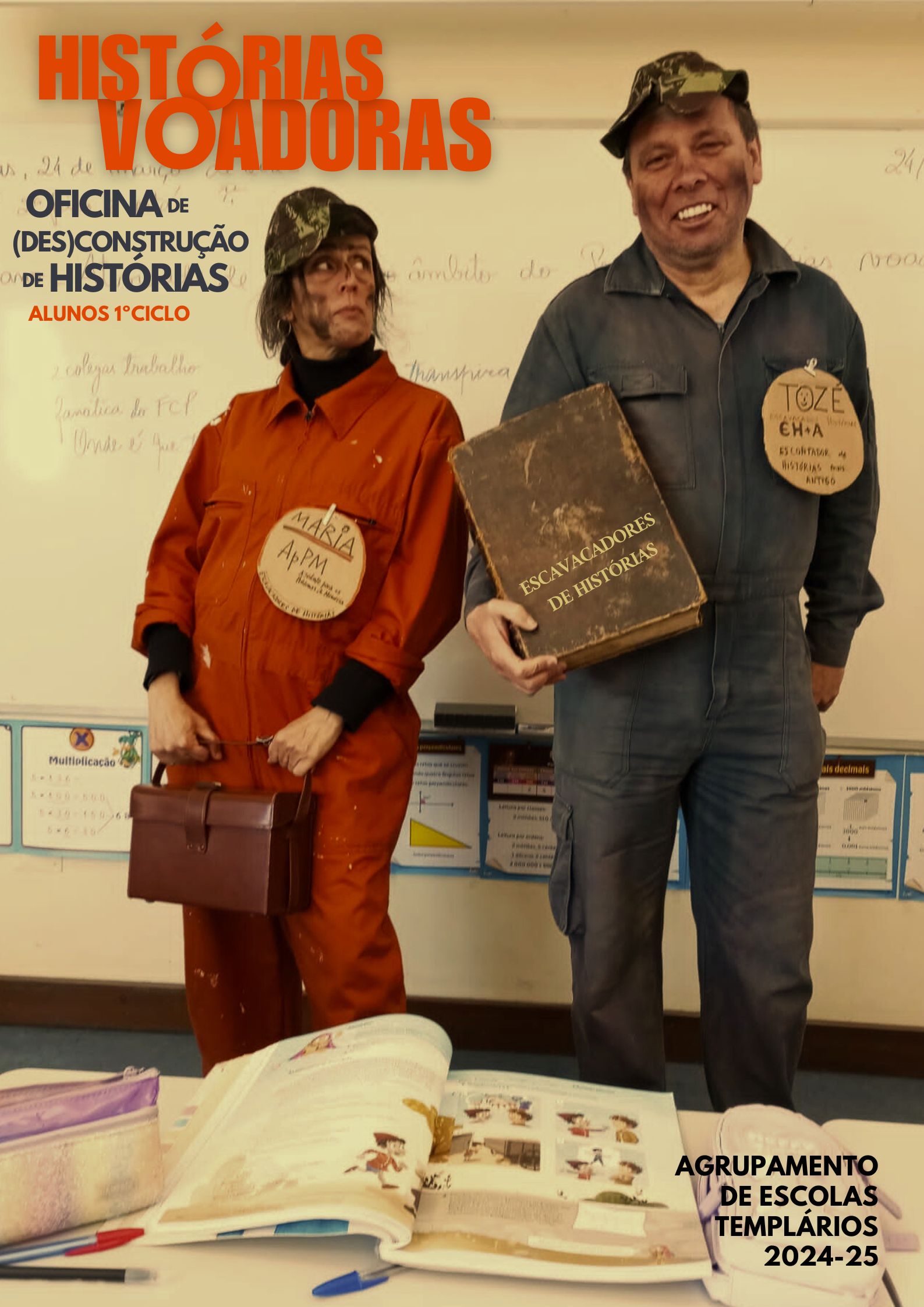 Durante o ano letivo de 2024/2025, as escolas do 1.º Ciclo do Agrupamento de Escolas Templários foram palco de um projeto singular e cheio de imaginação: Histórias Voadoras – Oficina de (des)construção de histórias. Todas as segundas-feiras à tarde, o universo da literatura infantil ganhou uma nova vida com a visita às salas de aula de dois dinamizadores muito especiais, os “escavacadores de histórias”: António Clemente, artista convidado e professor do 1.º ciclo, e Maria Morais, artista residente do Agrupamento e mediadora cultural.