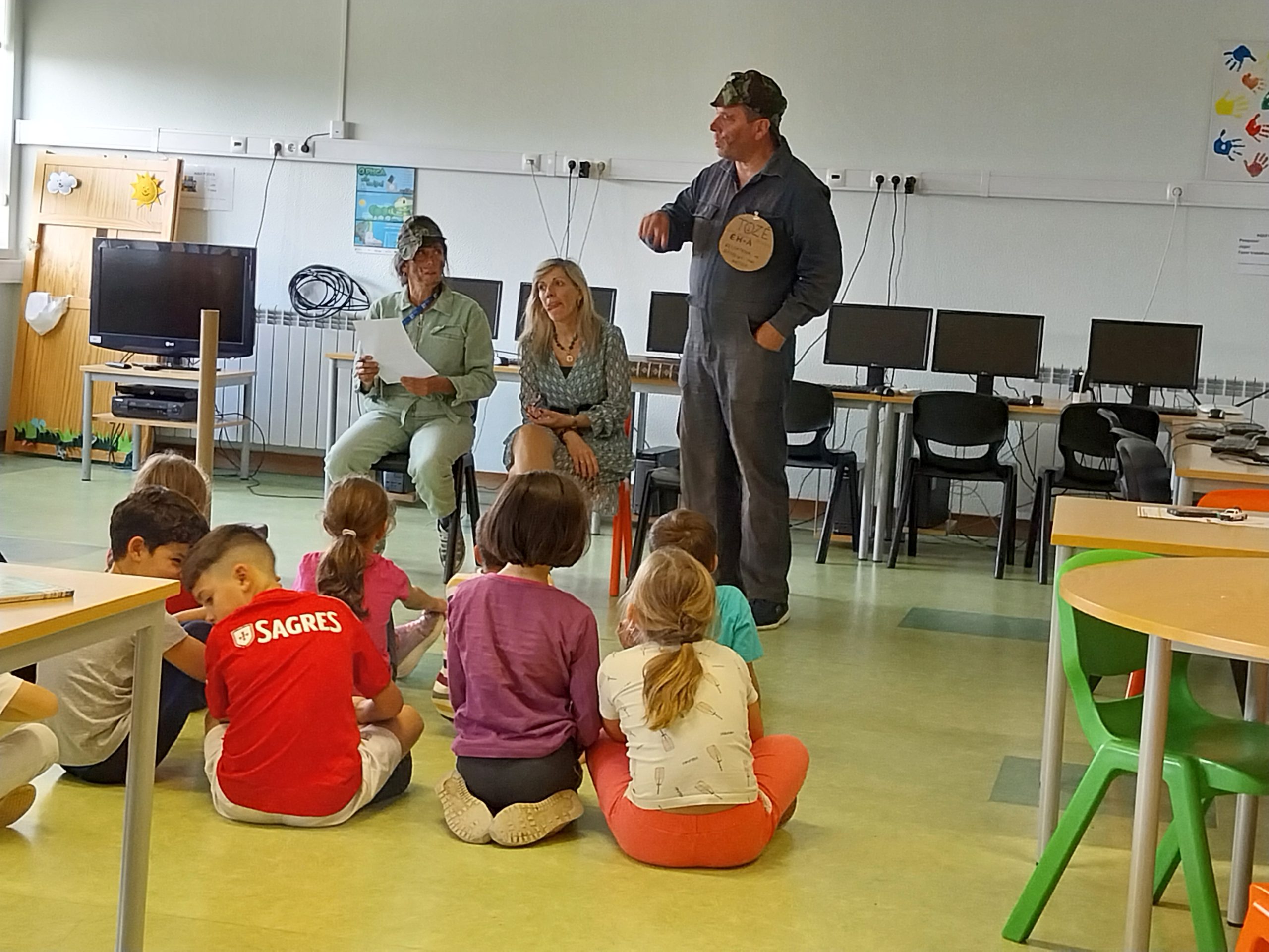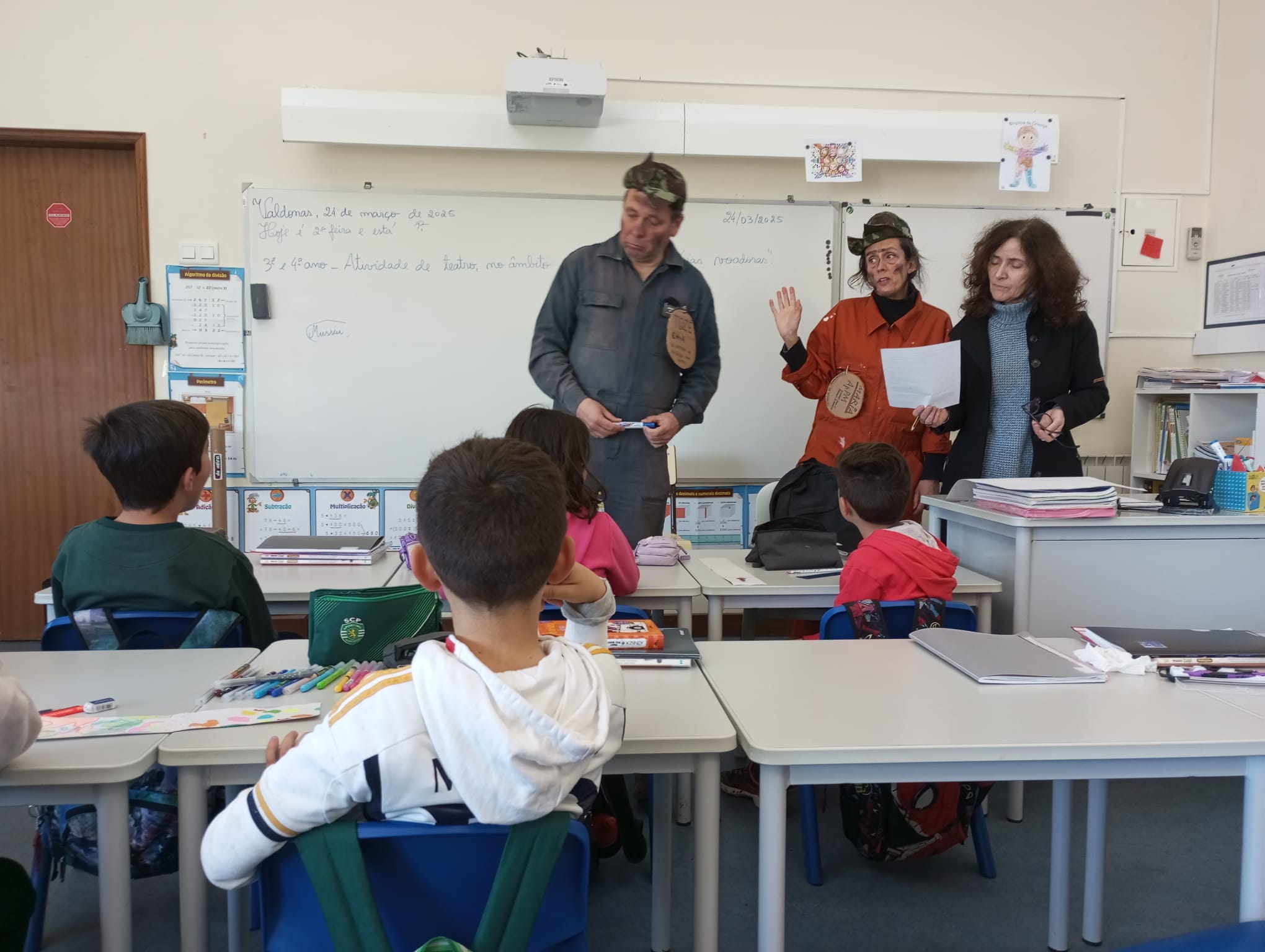 Para que o projeto chegasse a todas as turmas, foi necessário um esforço logístico coordenado, com o apoio fundamental das escolas: um espaço comum para a apresentação, turmas disponíveis à hora certa, e a preciosa colaboração dos professores titulares de turma, que integraram ativamente o processo criativo.
