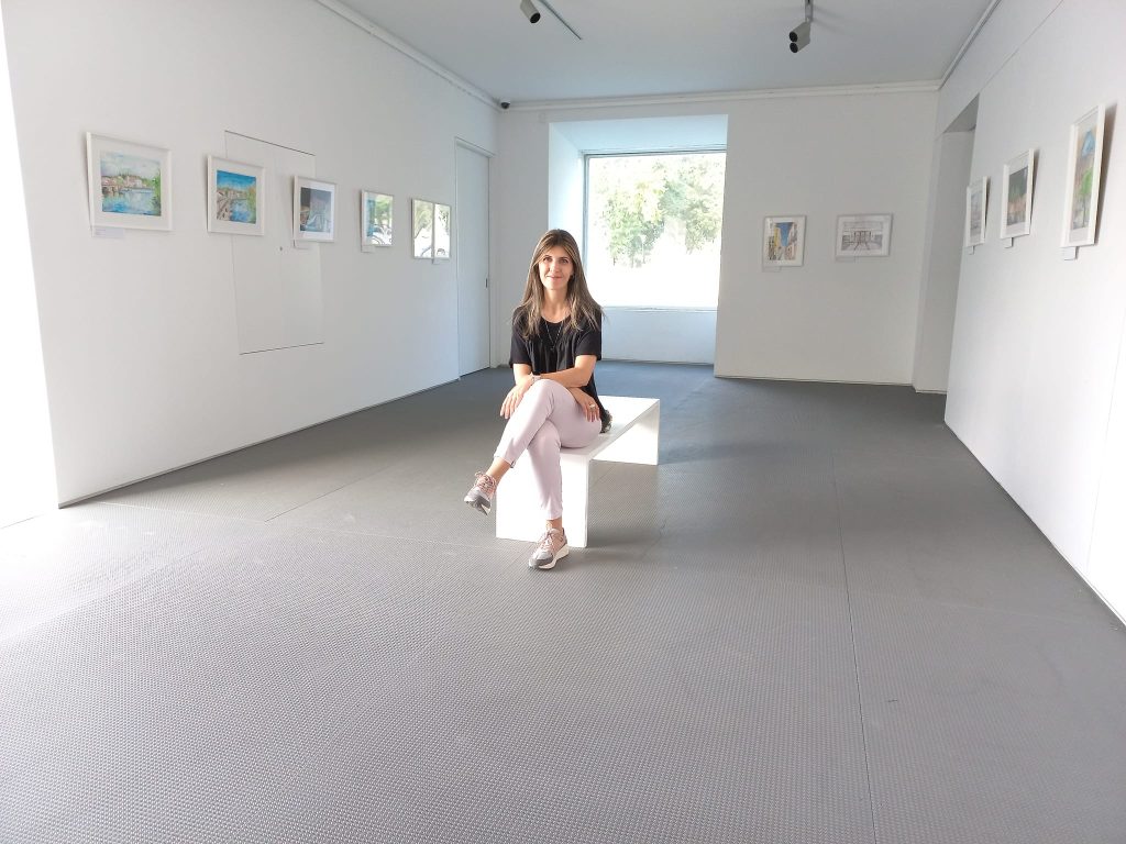 “ Gosto de viajar por entre a frieza das rochas, pelos recantos das casas com histórias perdidas no tempo, por entre a Natureza isolada e serena, onde ecoam luzes e cores harmoniosas, por vezes ocultas ou dissimuladas. Anima-me parar o tempo às cidades que já não conhecem o silêncio ou a quietude, neste novo mundo Frágil, Ansioso, Não Linear e Incompreensível, pois há algo de mágico que cores e os traços estáticos nos transmitem: talvez seja essa Calma – um estado de espírito raro. Nos últimos anos percorri Portugal através da pintura a aguarela tendo por base fotografias belíssimas de diversos locais e perspetivas improváveis. Colaborei como ilustradora de dois guias turísticos de Santa Comba Dão e Guarda, da editora Foge Comigo!. Nesta exposição venho partilhar convosco estes trabalhos desenvolvidos nos últimos anos, em Silêncio e Harmonia.”