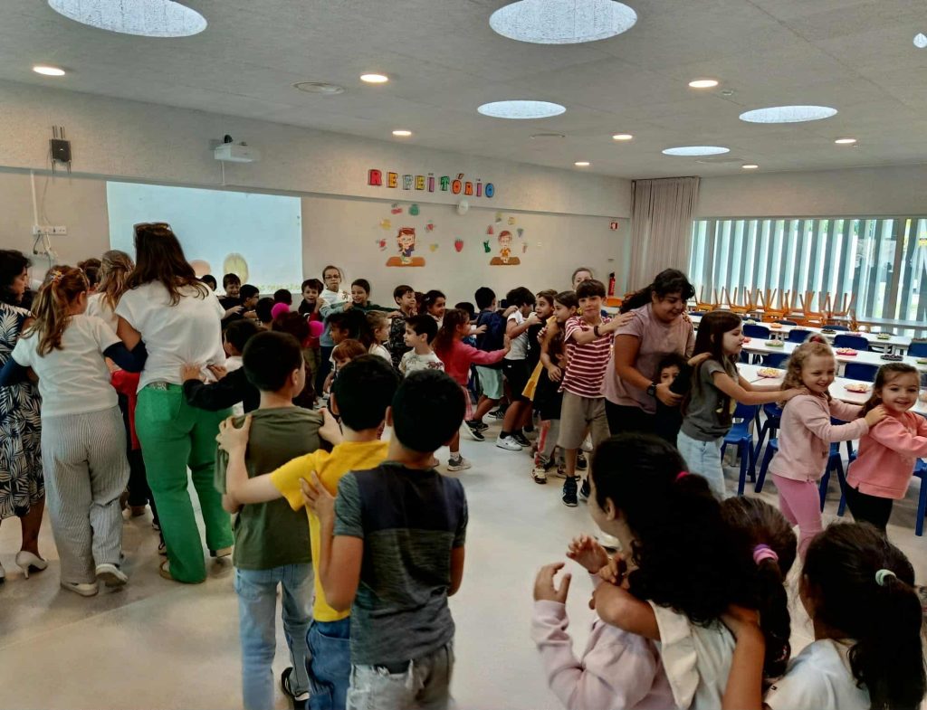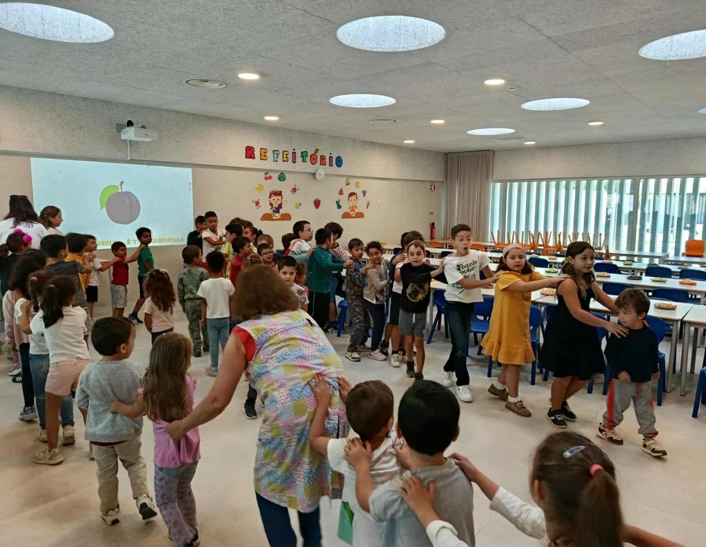 Os alunos começaram por conhecer a história do Dia Mundial da Alimentação, refletindo sobre o seu significado e a necessidade de garantir o direito à alimentação para todos. Seguiu-se um momento de música e dança, onde as crianças expressaram, com alegria e movimento, os benefícios de comer bem e viver com saúde.