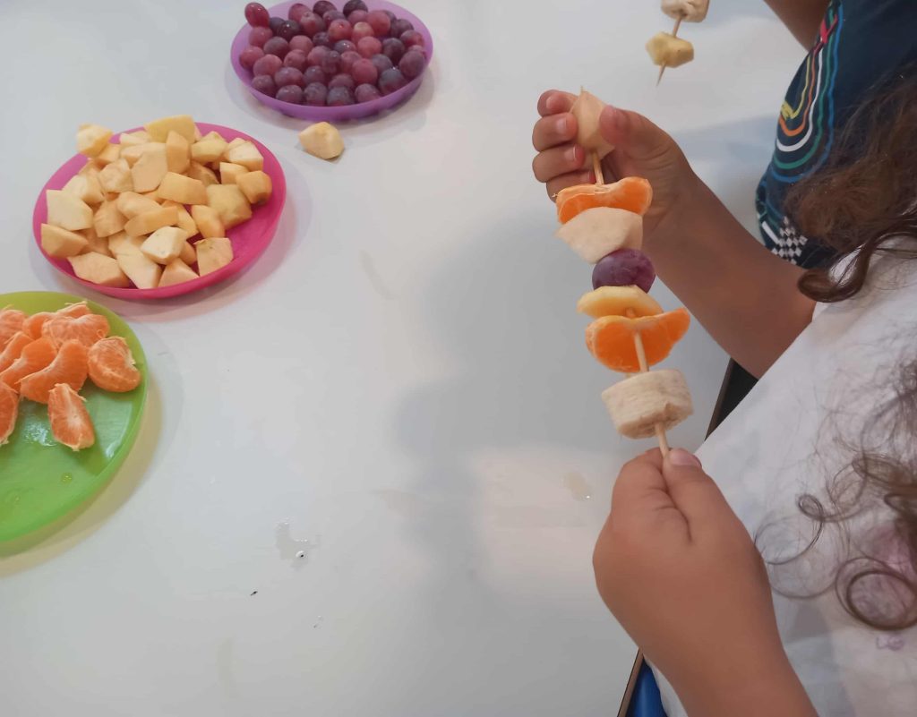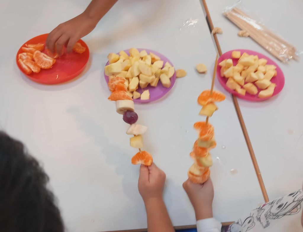 Um dos pontos altos do dia foi a confeção de espetadas de frutas, onde os alunos puderam explorar sabores, cores e texturas, criando combinações deliciosas e nutritivas. Esta atividade reforçou o gosto por alimentos naturais e incentivou escolhas saudáveis no dia a dia.