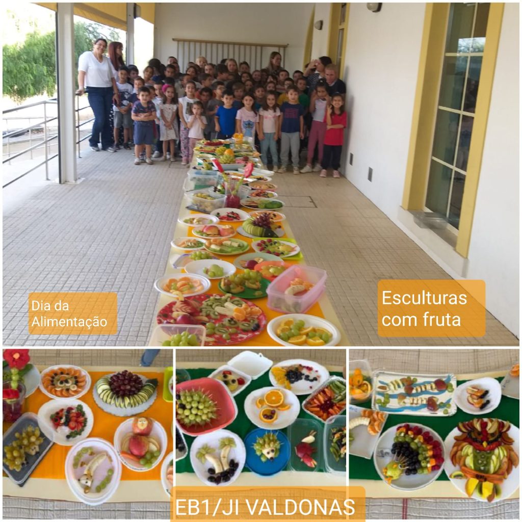 “Esculturas com Fruta” No dia 16 de outubro comemorou-se o Dia Mundial da Alimentação com uma exposição de esculturas com frutos elaboradas com a colaboração das famílias. Fizemos uma exposição das maravilhosas “obras de arte” no espaço exterior da escola e degustamos os saborosos e saudáveis frutos. Aprender a comer com Arte é muito divertido!