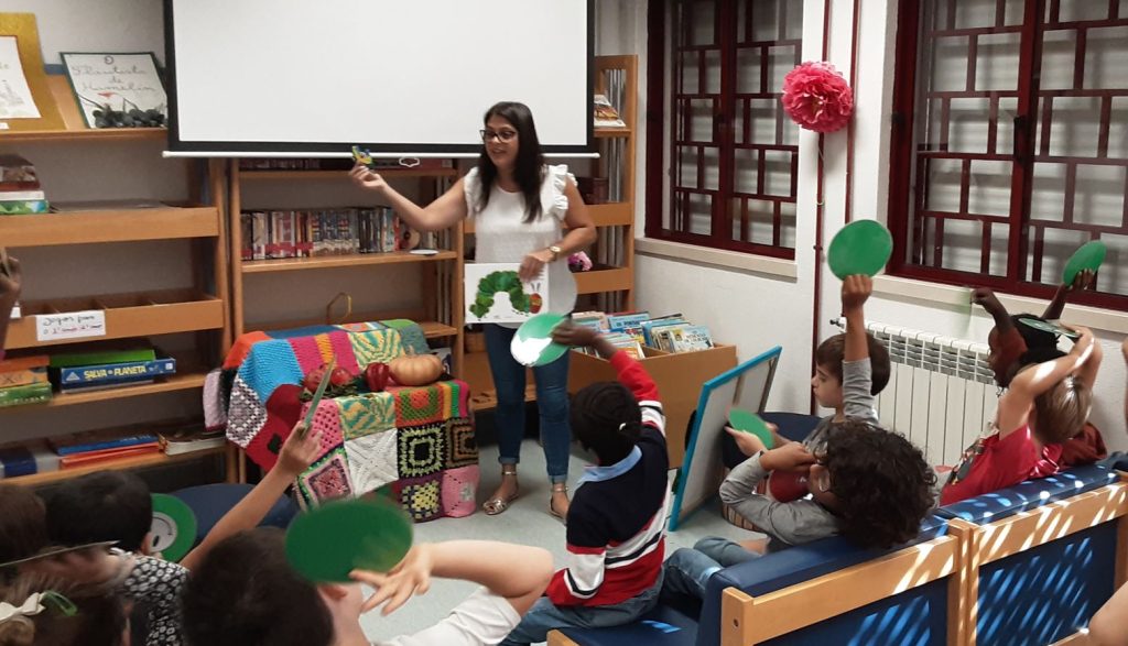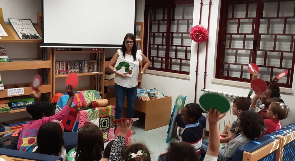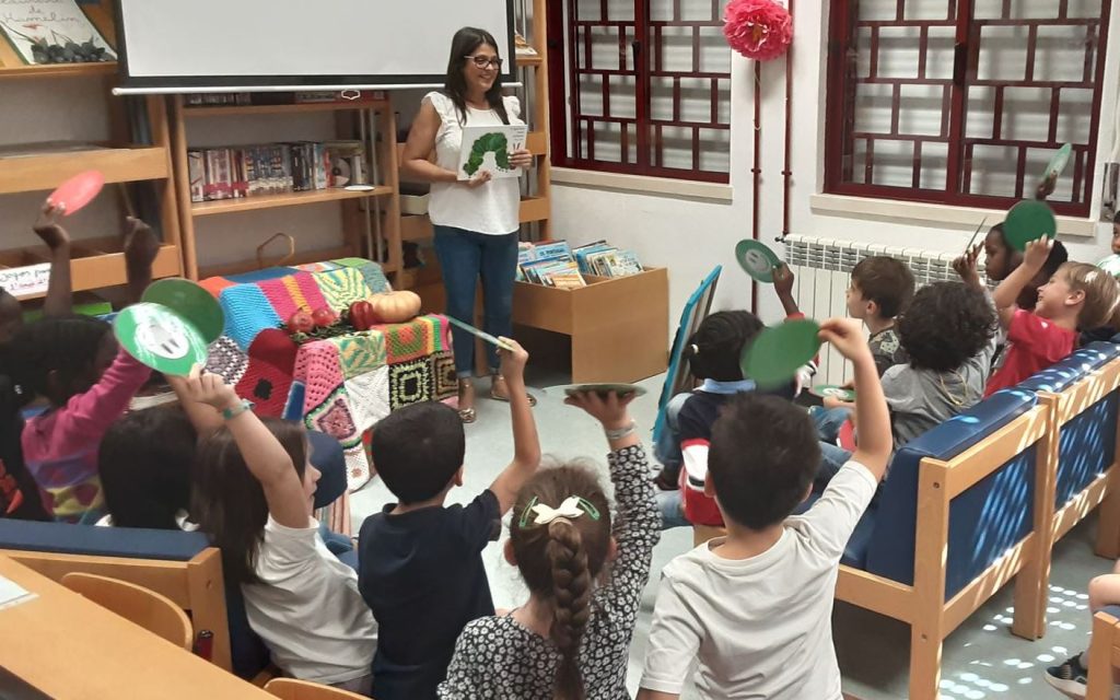 A atividade de animação de leitura teve por base a obra “A lagartinha muito comilona”, de Eric Carle, e foi dinamizada pela professora Sónia Coelho.