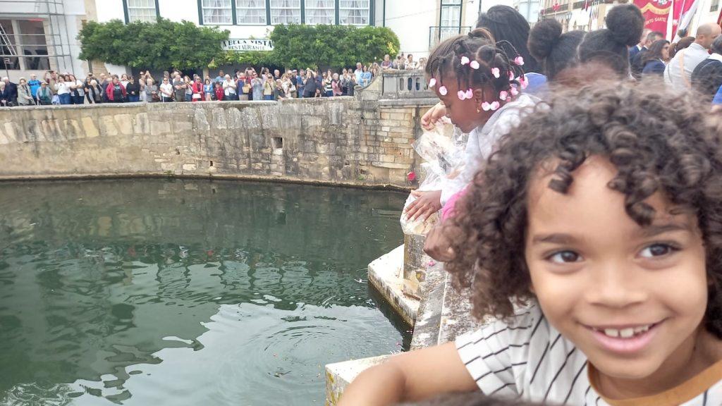 Como é habitual, as crianças da Escola EB1/JI Templários, participaram de forma muito especial, lançando pétalas de flores ao rio Nabão, num gesto que encheu de cor as margens do rio.