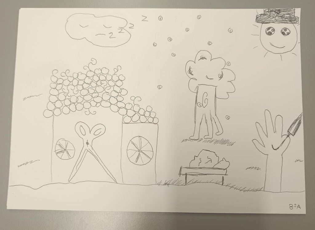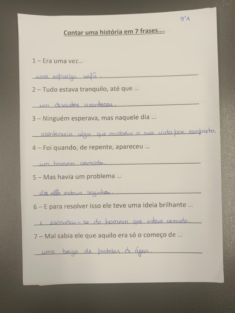 No final, as turmas de 7.º e 8.º anos realizaram uma atividade intitulada “Desenho Maluco”, que consistia em ouvir um pequeno texto e depois desenhar o que se ouviu. O objetivo era desenhar o máximo de informação possível. Os alunos do 9.º ano puxaram pela criatividade e contaram uma história em 7 frases, de onde saíram histórias dramáticas, comédias e até românticas.