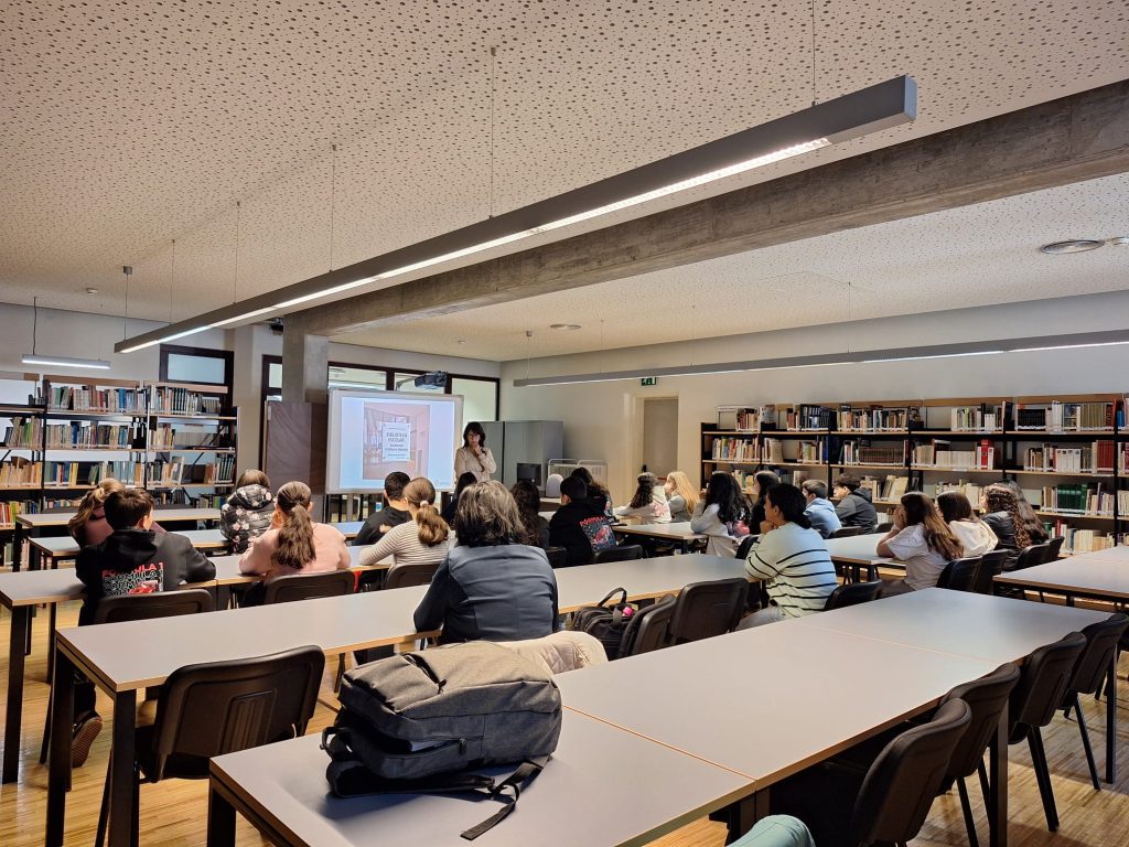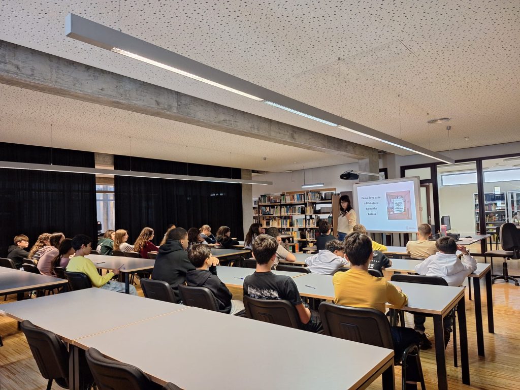 Os alunos ficaram a conhecer melhor o serviço que a biblioteca presta no apoio às aprendizagens, bem como a forma como o fundo documental está organizado. Aprenderam também a pesquisar obras no catálogo online de todas as bibliotecas do concelho de Tomar.