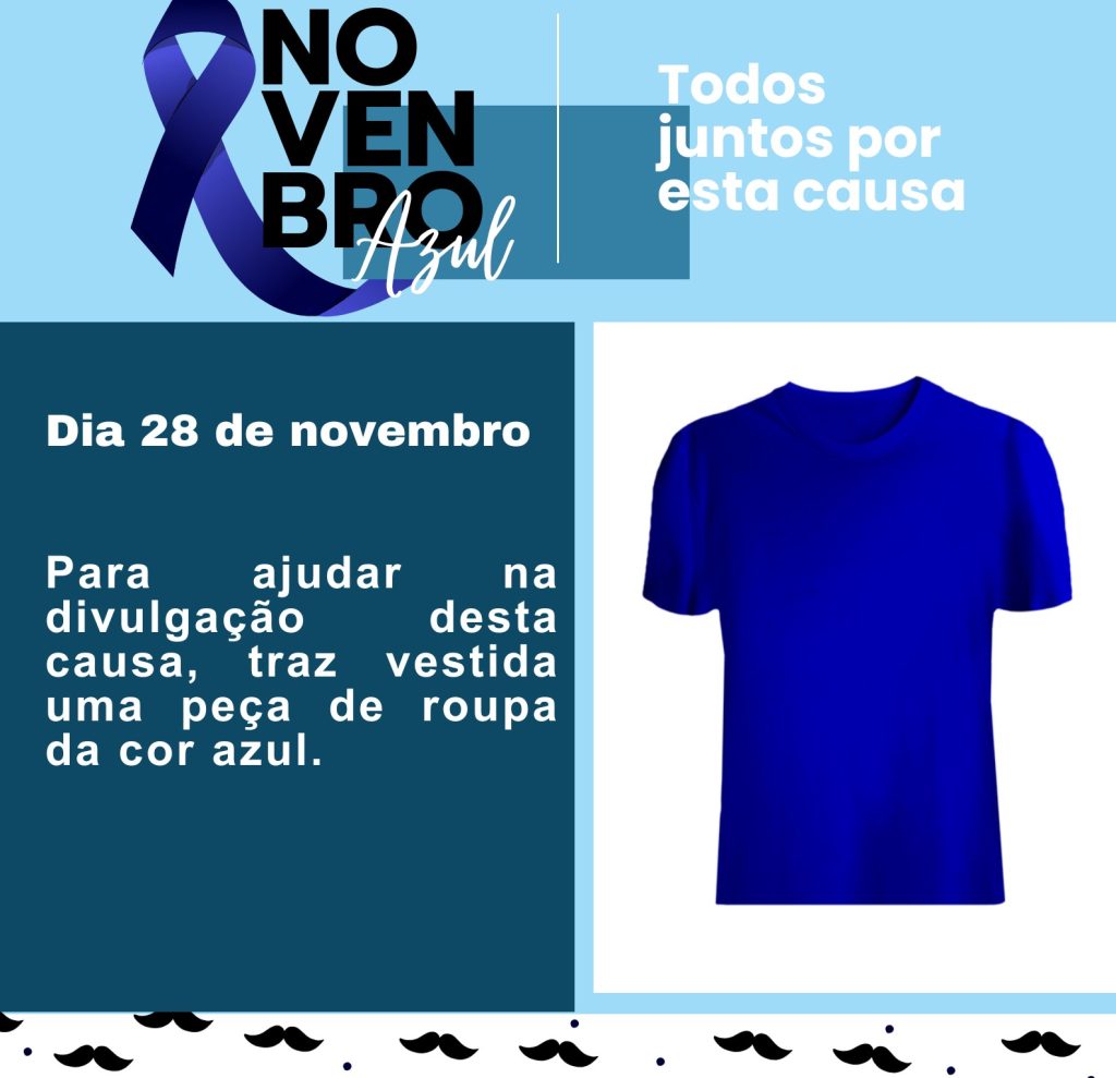 No próximo dia 28 de novembro, o Agrupamento de Escolas Templários irá assinalar o Mês da Prevenção do Cancro da Próstata. As alunas Áurea António e Sandra Fernandes (12º O – curso TAS) convidam toda a comunidade escolar a vestir, nesse dia, uma peça de roupa azul de forma a sensibilizar para a saúde do Homem. Aos alunos será disponibilizado […]
