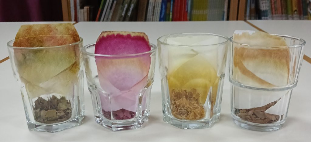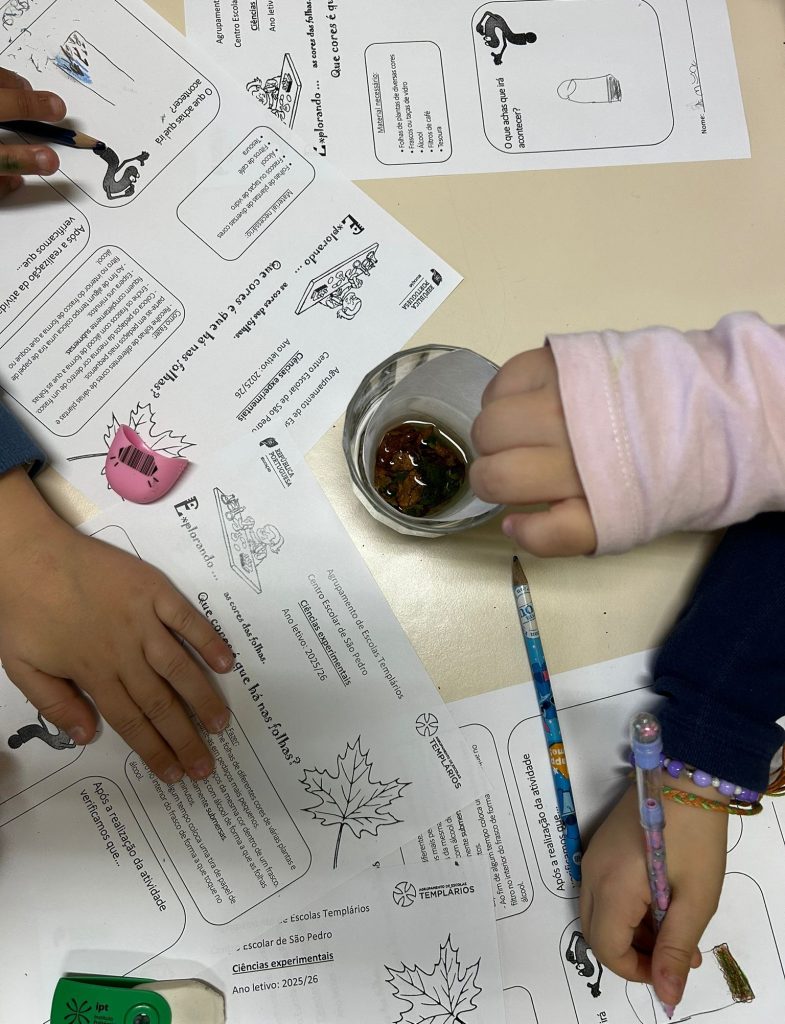 Aproveitando as cores do outono que está quase a terminar, as turmas do 1º e 2º anos do Centro Escolar de São Pedro fizeram uma cromatografia com folhas de árvores de diversas cores.