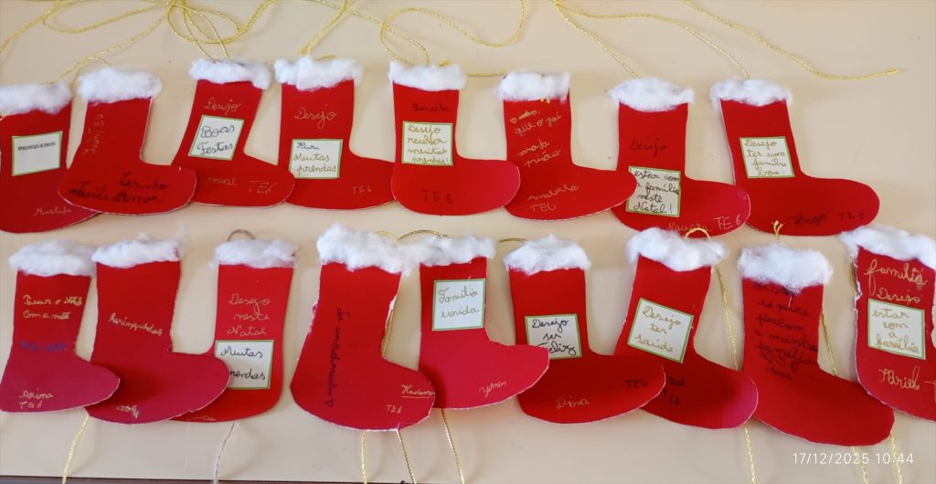 Alunos e docentes uniram-se para elaborar desejos natalícios, que foram cuidadosamente escritos e colocados em balões de hélio, num gesto carregado de esperança e alegria.