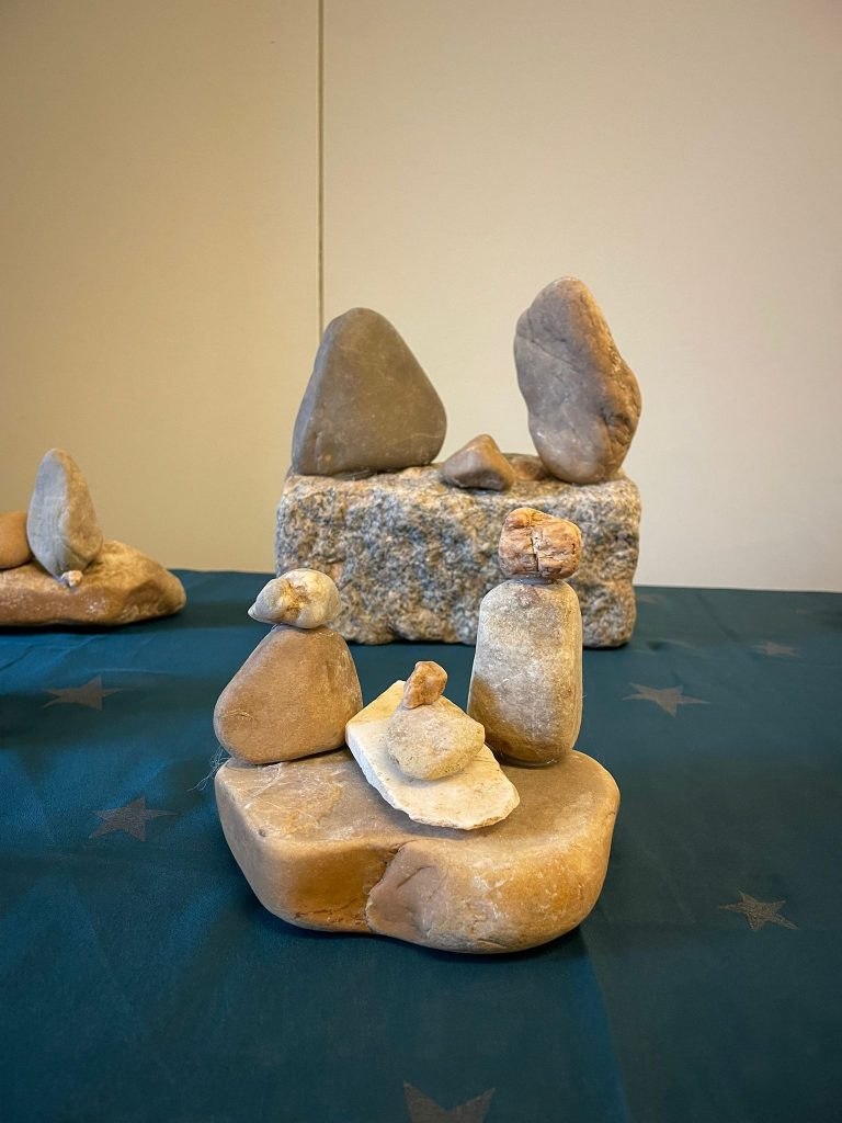 As rochas apresentavam diferentes graus de transporte, rolamento e tamanho, permitindo a cada aluno tirar partido das suas formas naturais de forma criativa. Posteriormente, os presépios foram concebidos e elaborados em sala de aula, resultando em trabalhos originais que aliaram a expressão artística à sensibilização ambiental.