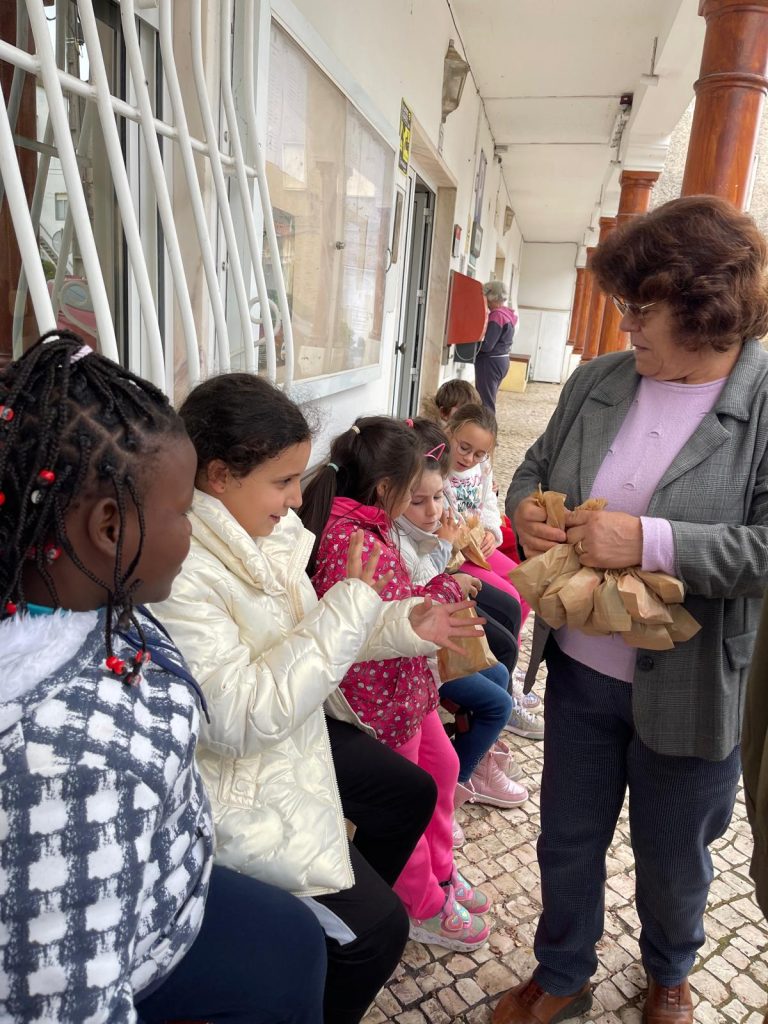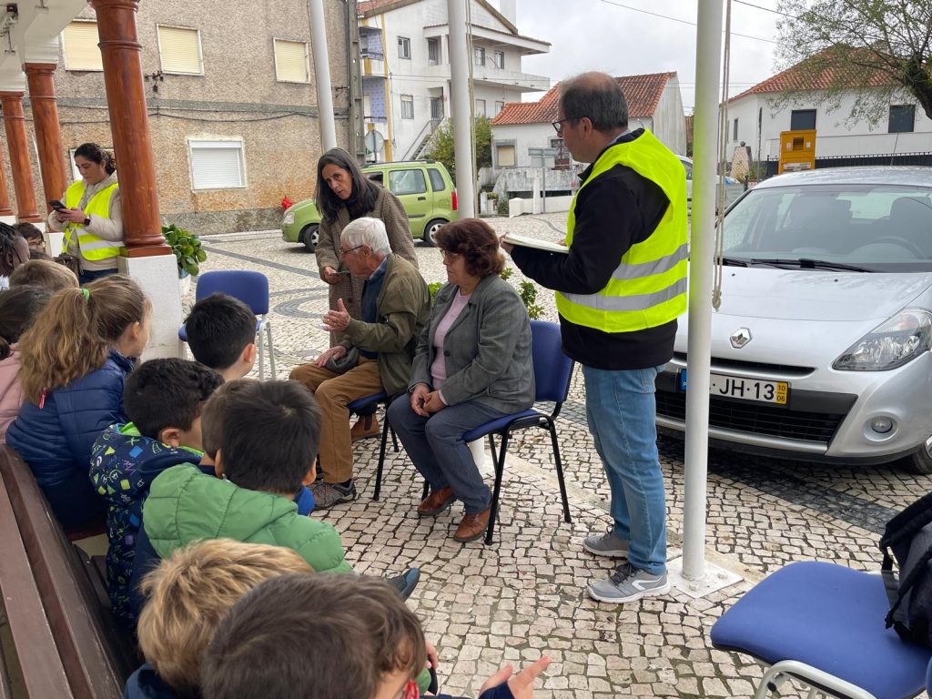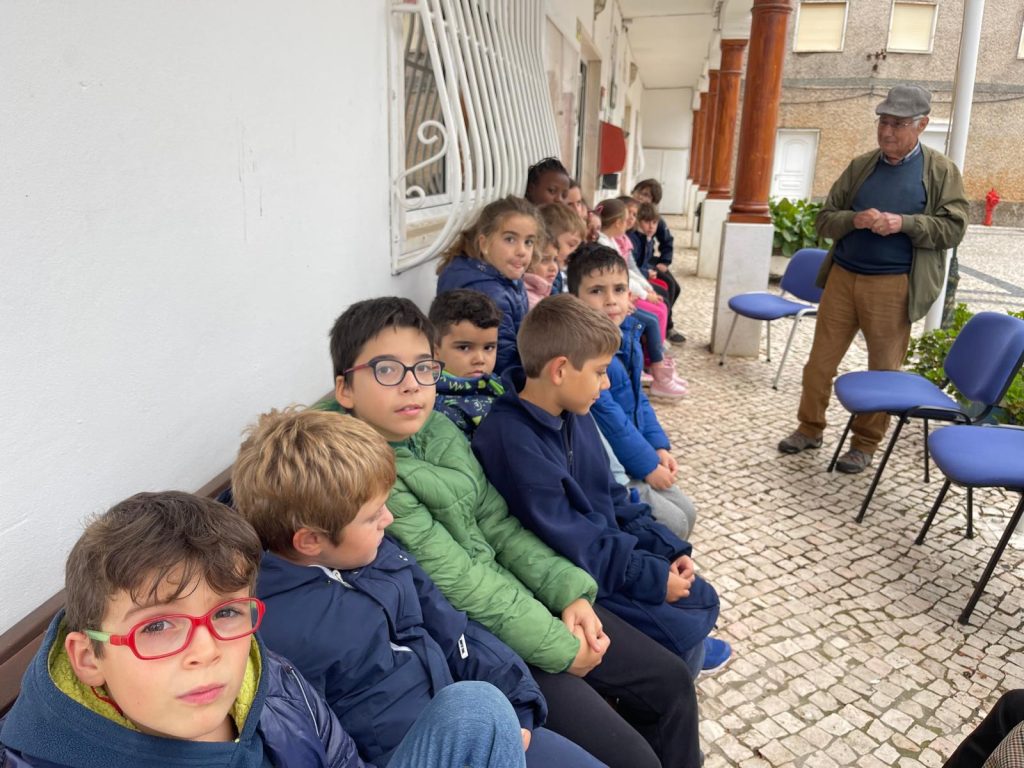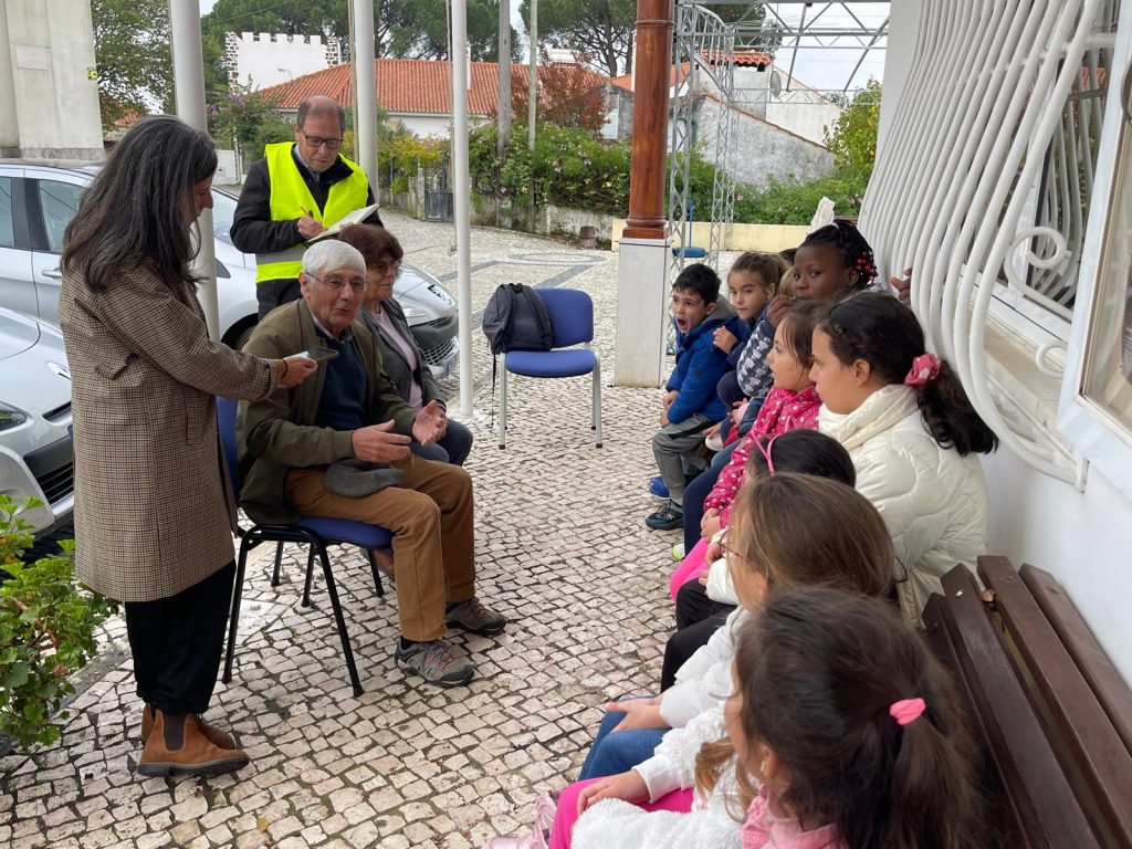 A conversa, longa, solta e informal como todas as boas conversas, aconteceu ao ar livre, à porta da Junta de Freguesia. Foi sobre como era a vida por aqui no “antigamente”. As perguntas trazidas pelas crianças serviu de pretexto a histórias e aprendizagens várias, num processo criativo que se pretende integrado e integrador.