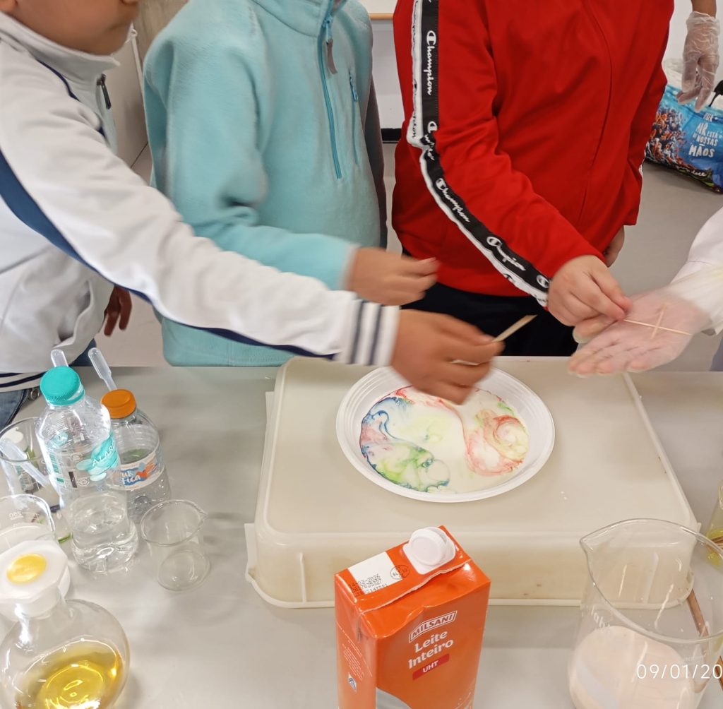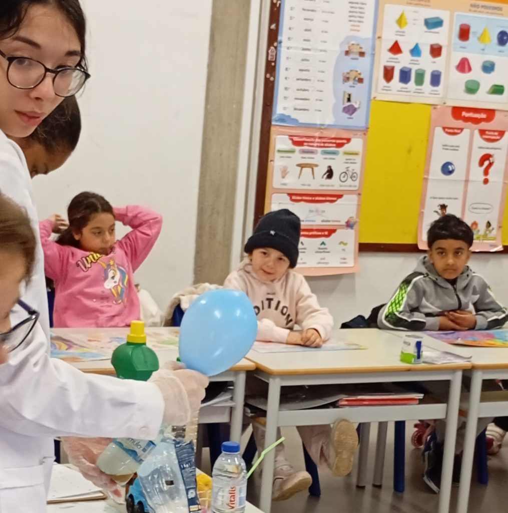 Estas ações decorreram nos dia 5 de dezembro e 9 de janeiro, dinamizadas pelos professores Miguel Sanches e Dina Mateus, contando ainda, com a colaboração de duas alunas da professora Dina Mateus. Estas ações consistiram na realização de experiências, em sala de aula, que decorreram num ambiente educativo muito favorável, contribuindo para as aprendizagens significativas dos alunos tendo sido do seu agrado.