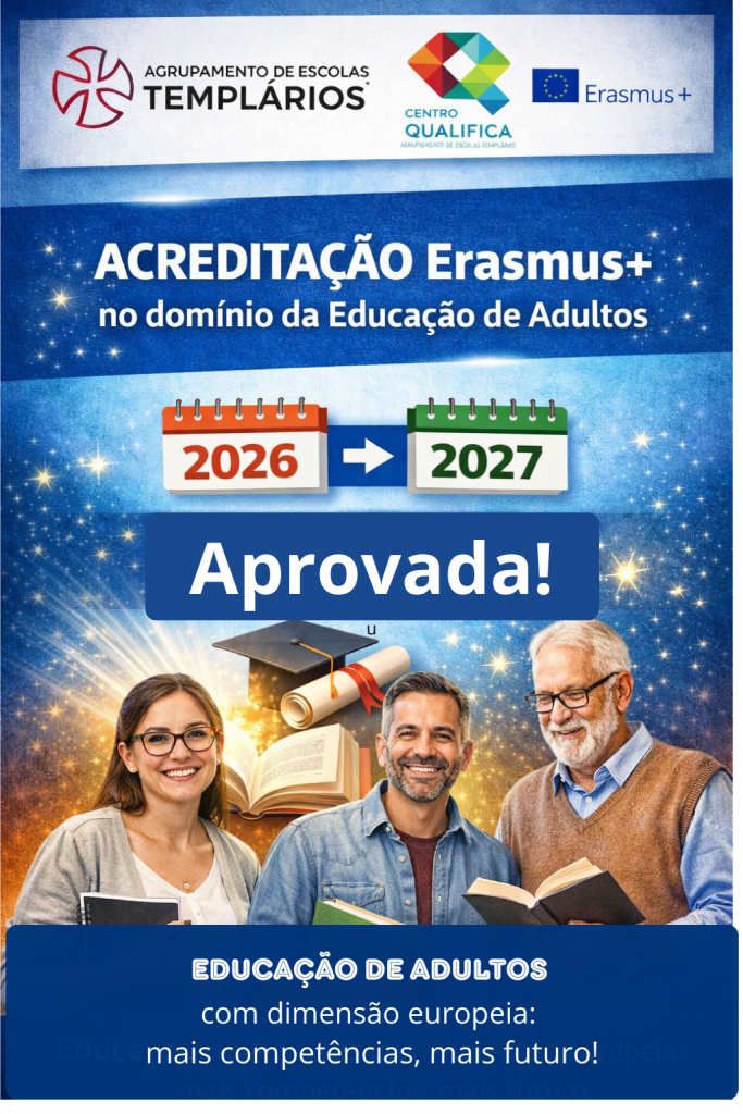 O Agrupamento de Escolas Templários, através do Centro Qualifica, obteve a Acreditação Erasmus+ no domínio da Educação de Adultos, válida de 1 de junho de 2026 a 31 de dezembro de 2027. Esta distinção reconhece o trabalho desenvolvido na promoção da Aprendizagem ao Longo da Vida e reforça o nosso compromisso com a qualificação, a […]