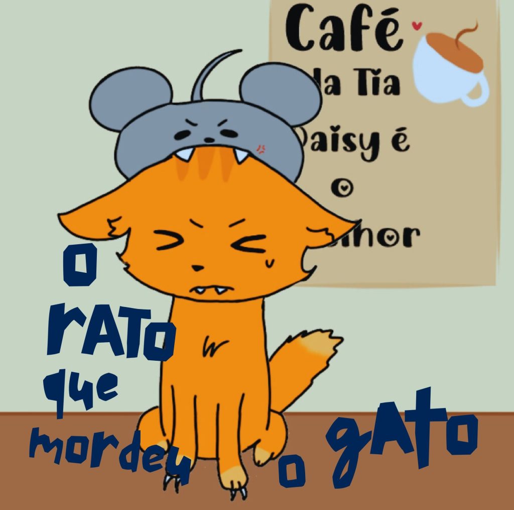 A imagem do podcast “O rato que mordeu o gato” foi criada pela Bruna Gil com base no seu gosto pelo desenho e pelas linguagens gráficas japonesas contemporâneas, mas também tendo em conta as sugestões de todos e o “estilo” do projeto.