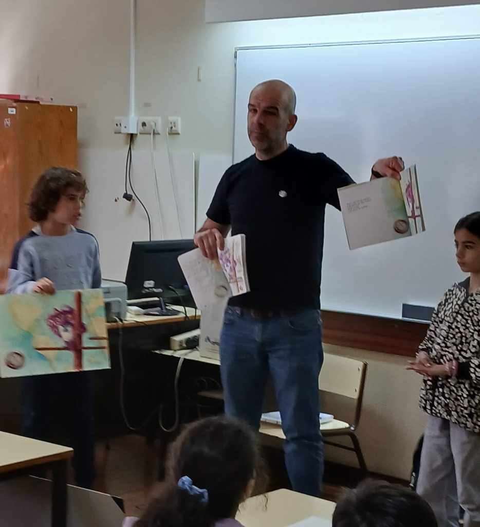 No âmbito da XI Semana Cultural do Agrupamento de Escolas Templários, o pintor e ilustrador Bruno Ferraz deslocou-se ao Centro Escolar de São Pedro para apresentar aos alunos o seu processo criativo, desde o esboço do desenho até à ilustração final dos livros.