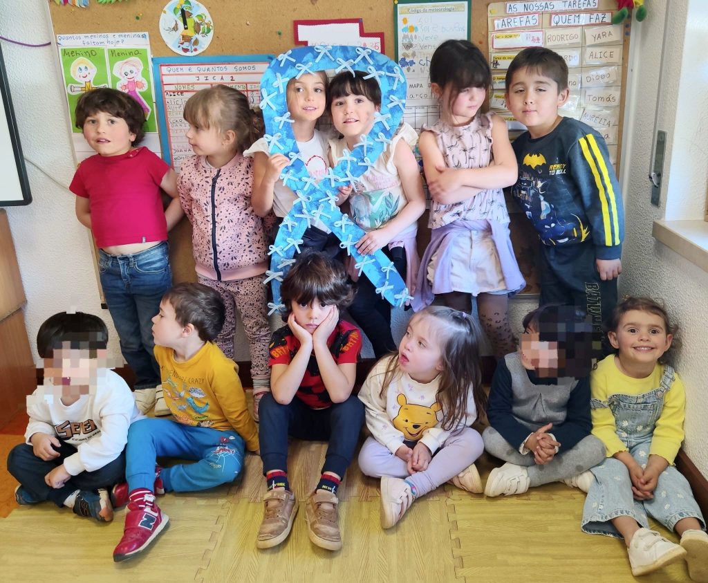 No final da sessão, a Docente sugeriu ao grupo a participar na construção de um Laço Azul. Com esta iniciativa, pretendeu-se envolver não só as crianças, mas também alertar os Encarregados de Educação e toda a Comunidade Educativa, para a importância da Deteção de Situações de Perigo para a Infância, reforçando o compromisso coletivo na proteção das crianças.