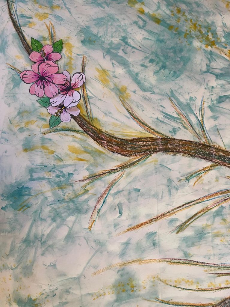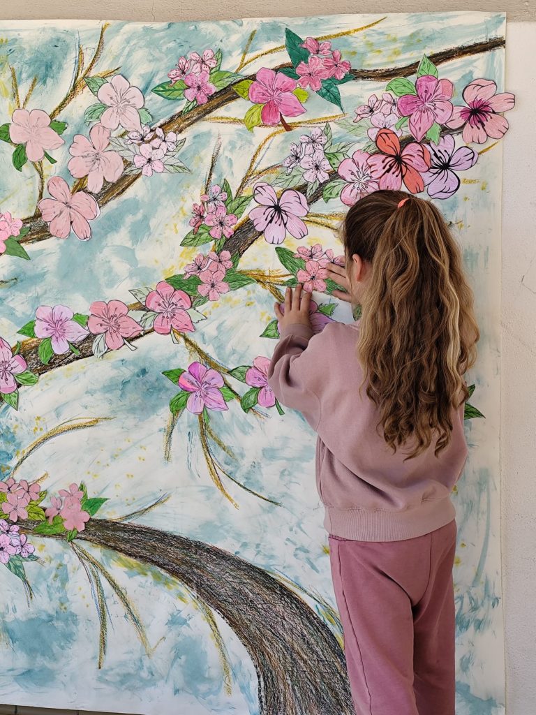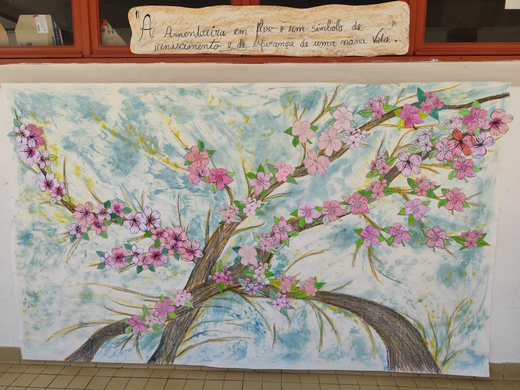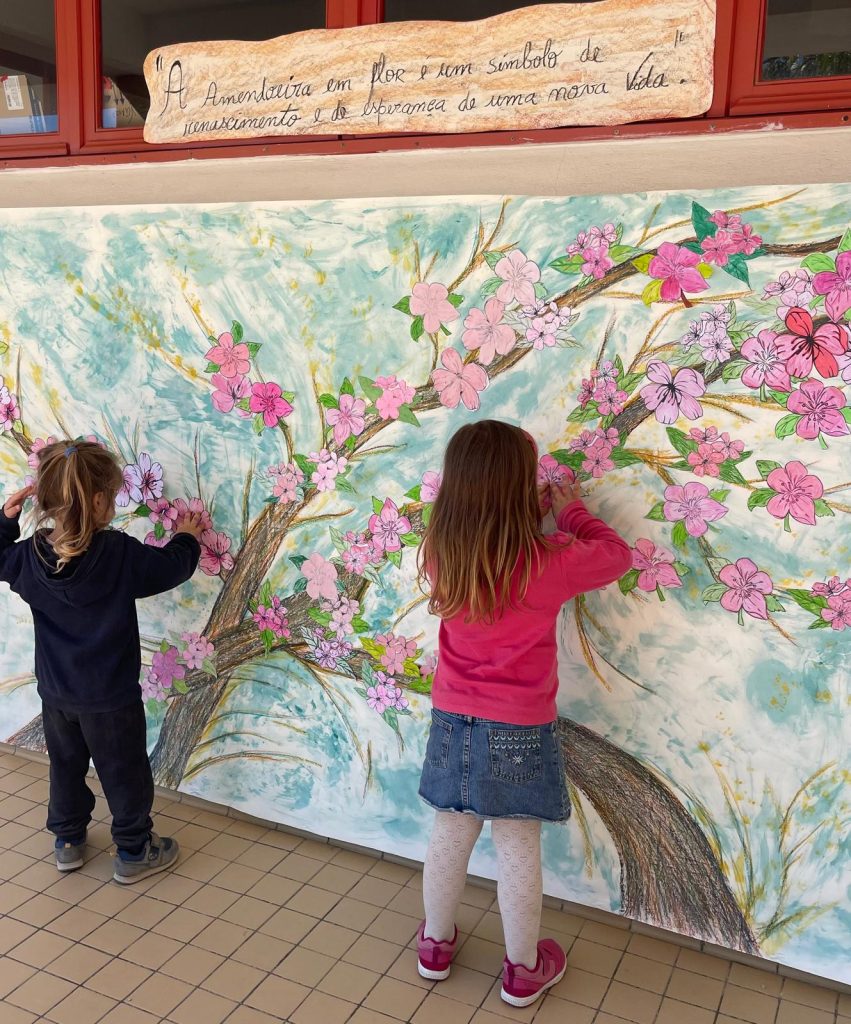 Cada criança criou uma folha ou flor personalizada, posteriormente integrada numa árvore coletiva que simboliza a criatividade individual ao serviço da comunidade educativa.