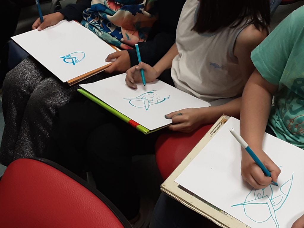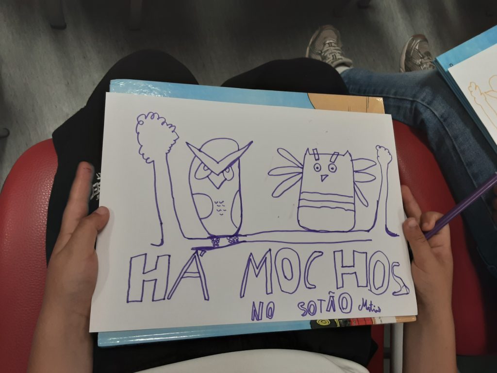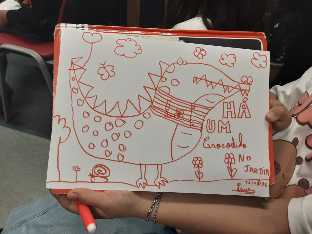 Foi uma atividade muito divertida e todos os participantes puderam desenhar crocodilos e mochos à sua maneira, acompanhado a escritora/ilustradora, cujas indicações permitiram que os alunos revelassem os seus dotes artísticos!