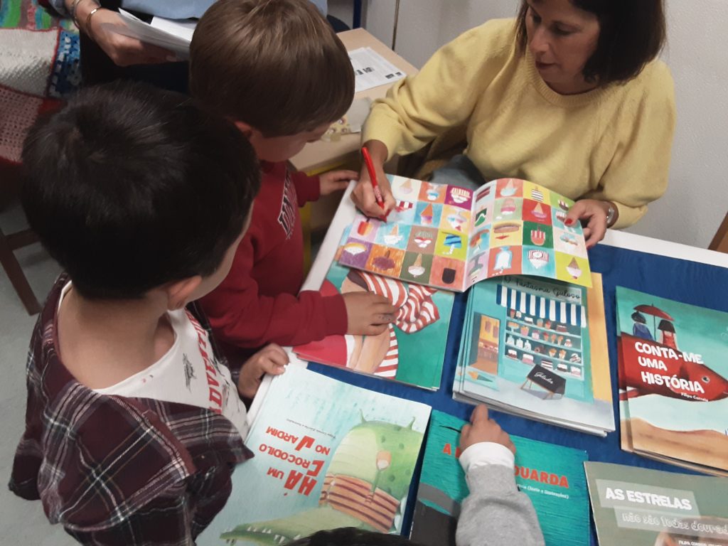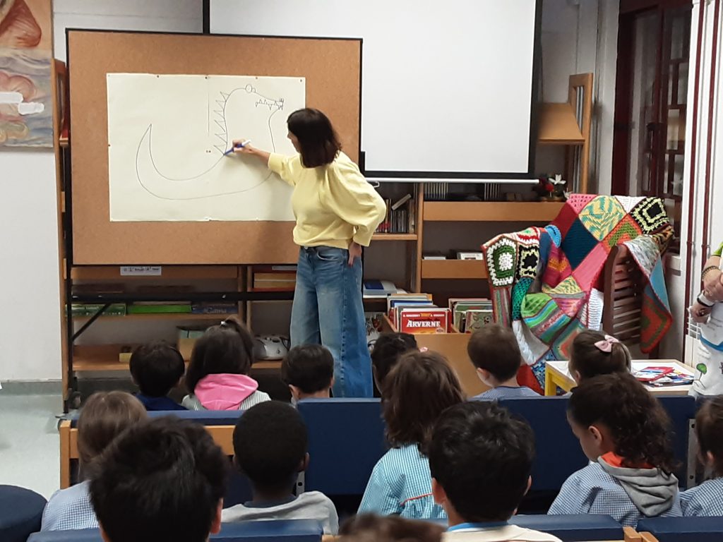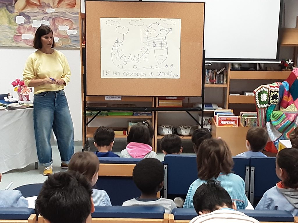 Numa apresentação prévia das suas obras, a escritora deixou à escolha dos alunos quais as obras/histórias que gostariam mais de ouvir, sendo que as histórias “Há um crocodilo no jardim” e “Há mochos no sótão” reunirão o maior número de votações. Assim, foram estas as histórias que estiveram em maior destaque na atividade leitura e ilustração realizada na Biblioteca.
