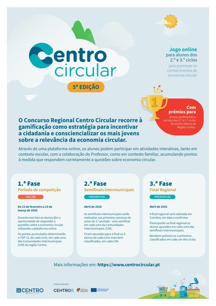 Destinado a alunos, professores e escolas dos 2.º e 3.º ciclos do ensino básico da região Centro, o concurso tem como principal objetivo promover a cidadania ativa e sensibilizar as camadas mais jovens para a importância da transição para uma economia circular.