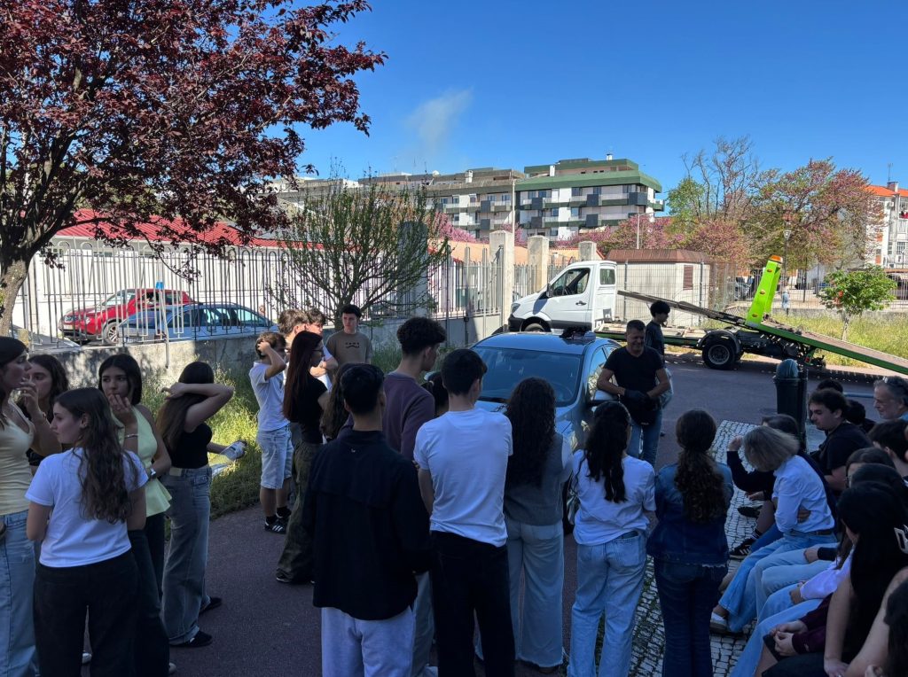 Na terça-feira, dia 31 de março, a turma dinamizou e participou, de forma empenhada, na primeira atividade proposta, cujo tema era “Aprende a Socorrer o teu carro”, promovida por José Ferreira, da J.A.R. Ferreira. Nesta atividade, os alunos tiveram como objetivo aprender a trocar um pneu em caso de furo e adquirir outros conhecimentos relacionados com a sinalética automóvel que pode surgir e que para muitos é desconhecida.